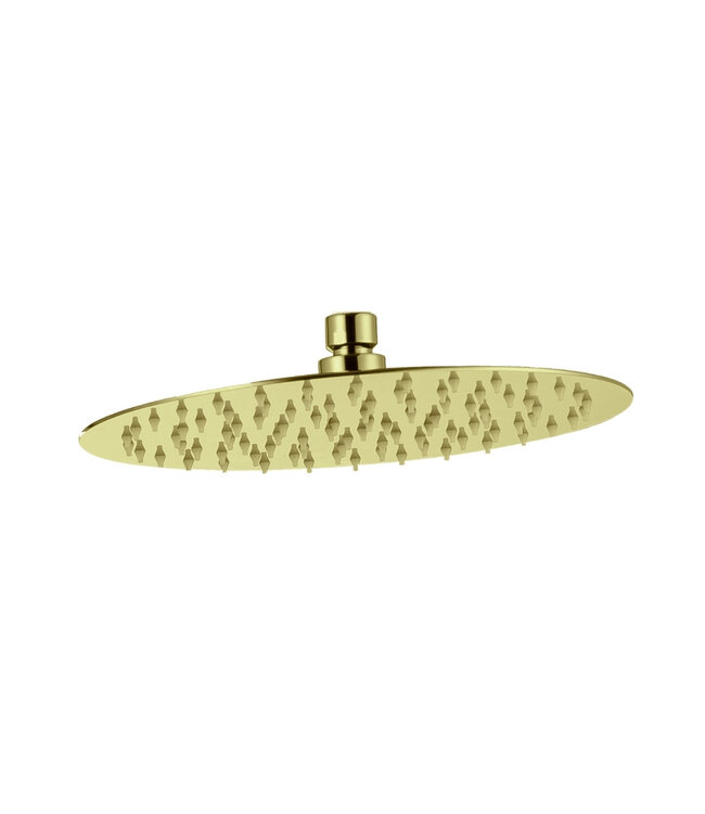Geef uw badkamer een luxe en moderne uitstraling met de Gido ultra slim regendouche van 25cm in een stijlvolle geborstelde gouden afwerking. Deze ronde douchekop combineert een strak design met een comfortabele en gelijkmatige waterverdeling voor een ontspannen douche-ervaring, elke dag opnieuw. Dankzij het extra slanke ontwerp oogt de douchekop minimalistisch en elegant, terwijl het royale formaat van 25 cm zorgt voor een volle, omhullende regendouche.