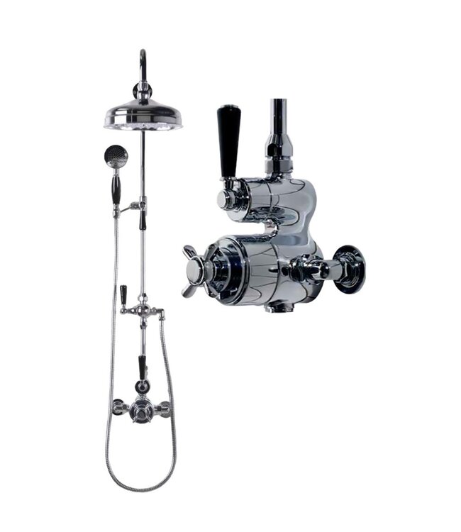 Windsor & Co. complete set opbouw thermostatische douchekraan met zwarte hendels, 20cm regendouche kop, glijstang en handdouche.